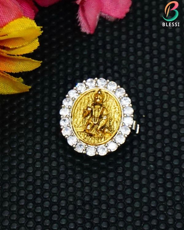 इस प्रीमियम बटन कवर में बहेतरीन कवोलिटी के अमेरिकन डायमंड लगे हे, या बटन कवर मे हनुमानजी का बारीकी से बना प्रतीक है, जो इसे दिव्य और सुंदर दोनों लुक देता है।