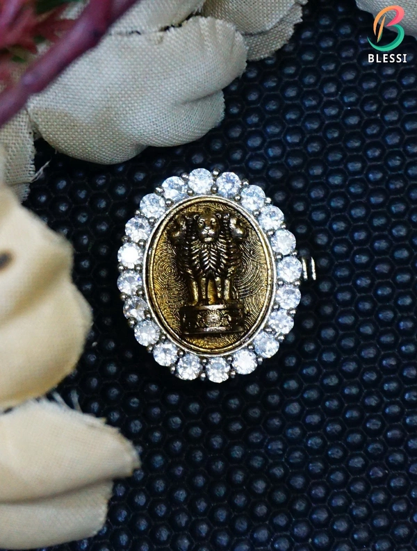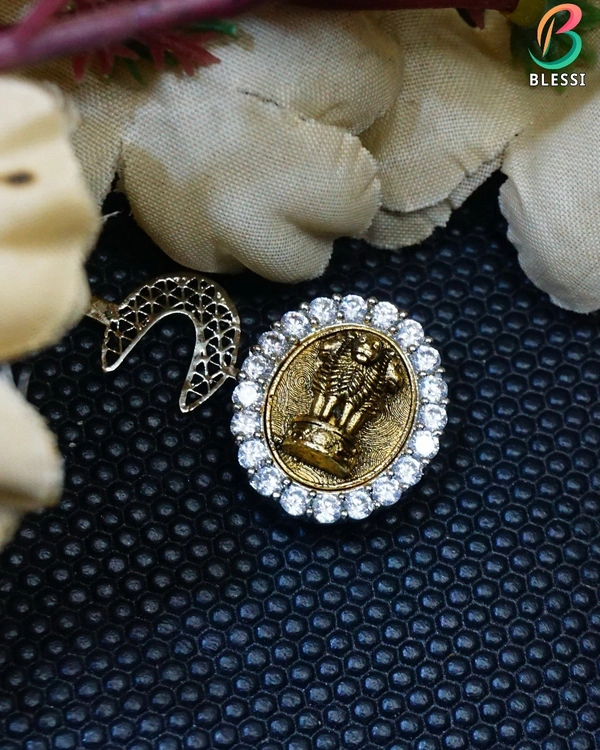 इस प्रीमियम अशोक स्तंभ बटन कवर के साथ भारत की ऐतहासिक विरासत पर गर्व कीजीए, जिसे बारीक कारीगरी और अमेरिकन डायमंड जड़े बॉर्डर के साथ खूबसूरती से डिज़ाइन किया गया है। यह शानदार एक्सेसरी किसी भी आउटफिट को तुरंत प्रीमियम बना देती है - चाहे वह शर्ट हो, कुर्ता हो, शेरवानी हो, या ऑफिस वियर हो।